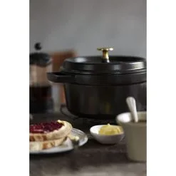 La cocotte Staub rimane insuperata per cuocere lentamente carni e verdure fino a raggiungere una tenera perfezione e per preparare abbondanti stufati e zuppe. La ghisa ha eccellenti proprietà di conservazione del calore. Ciò significa che il tegame si riscalda in modo uniforme. Il coperchio innovativo è dotato di piccole punte all’interno che riversano il liquido condensato sul cibo in maniera continuativa, portando a risultati sugosi e saporiti. Lo speciale interno smaltato nero opaco di Staub e il coperchio con punte a irrorazione continua garantiscono doratura e brasatura perfette, per un cibo dai sapori eccezionali. Con la loro splendida finitura smaltata, ogni pezzo passa magnificamente dalla cucina alla tavola. Dal comfort food alle sontuose cene, ogni piatto è speciale se servito in un prodotto Staub. Il pentolame staub in ghisa smaltata è la scelta dei migliori chef del mondo. Con una durabilità eccezionale, è perfetto per un utilizzo quotidiano sia in cucine casalinghe gourmet che in ristoranti prestigiosi in tutto il mondo. Costruiti per durare una vita intera, questi cimeli possono essere passati di generazione in generazione.