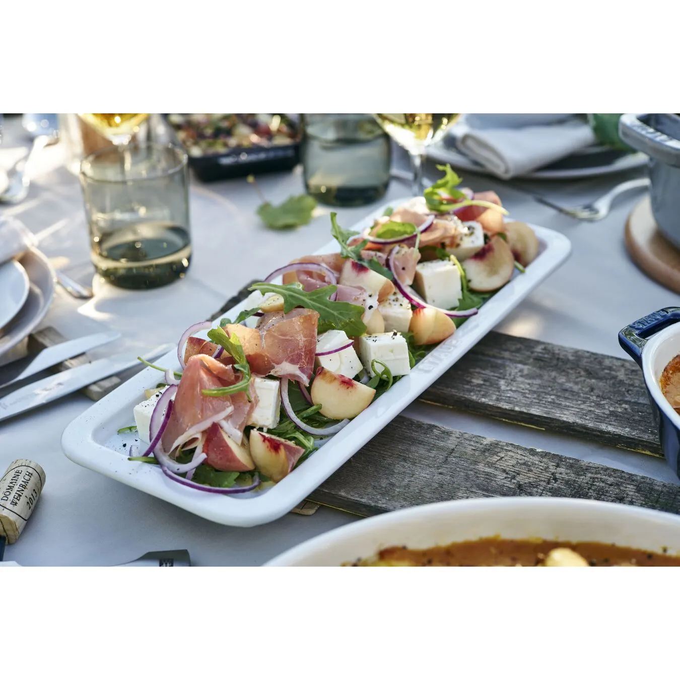 Se stai aspettando ospiti per un’occasione particolare, il vassoio da portata è particolarmente adatto anche per pesce o carne. Il vassoio da portata bianco della linea Ceramica di STAUB, con le sue dimensioni di 14 x 36 cm, offre una grande superficie per accogliere la giusta quantità di cibo. Grazie al suo design discreto e all’interessante colorazione, il vassoio da portata di STAUB si adatta a qualunque decorazione da tavola. Grazie alla sua superficie smaltata, è inoltre semplicissimo da lavare. Con questo vassoio da portata potrai servire le tue pietanze preferite in grande stile sulla tavola apparecchiata a festa.