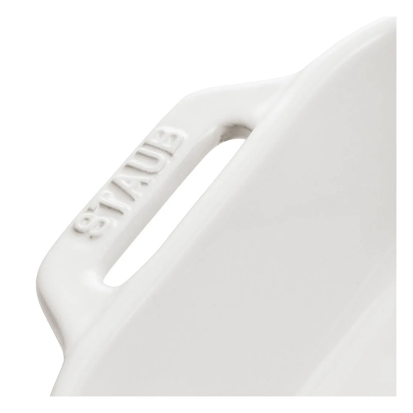 La pirofila rettangolare Staub è ideale anche quando preparate piccole quantità di abbondanti pietanze al gratin o gustosi dessert. Le sue dimensioni di 14 cm x 11 cm sono ottime per preparare un piatto per una persona. La sua finitura bianca la rende attraente ed elegante. La pirofila può essere impilata su altre pirofile per riporla in modo compatto. I manici ergonomici della pirofila facilitano l’uso. Con questa pirofila della serie Staub Ceramica potrete servire piccoli piatti cotti al forno, con stile.