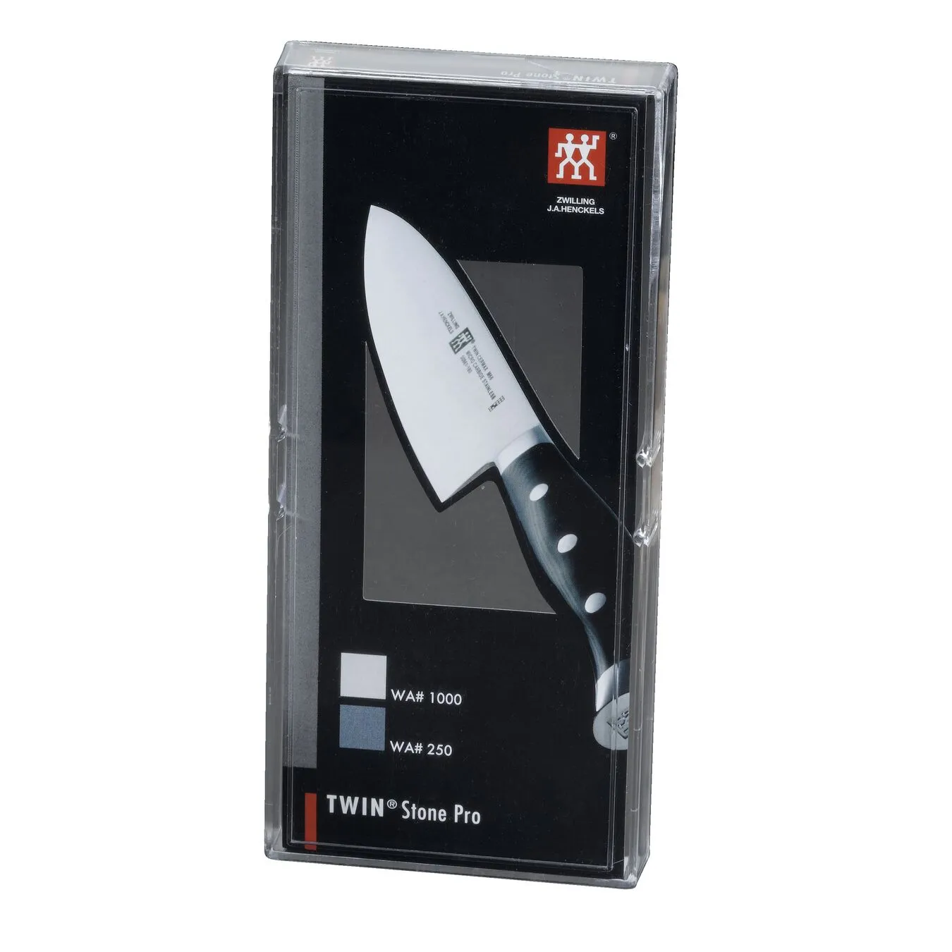 Avere coltelli affilati in cucina è un grande vantaggio. Con questa pietra affilacoltelli potete affilare autonomamente le lame smussate. È progettata appositamente per le lame ZWILLING per offrire un’affilatura perfetta. Misura circa 20 cm x 8,5 cm x 4 cm. Tutti i coltelli si smussano con il tempo e necessitano quindi dell’azione della pietra per affilare TWIN Stone Pro. Offre un’affilatura sia grossolana che fine, è facile da utilizzare e garantisce che le lame continuino a tagliare in modo netto. Qualunque siano le vostre esigenze di taglio, questa pietra affilacoltelli di ZWILLING renderà i vostr coltelli consumati nuovamente utilizzabili.