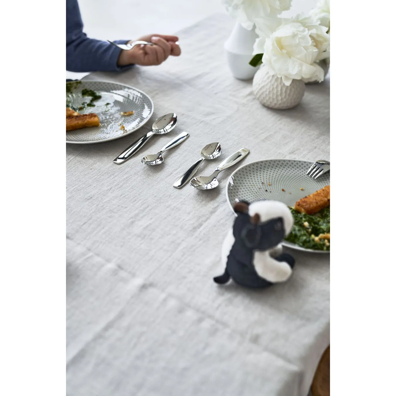 Questo servizio Pila da 4 posate da bambino aiuterà i bambini dai 3 anni in su a imparare a usare coltello, forchetta e cucchiaio da soli. La forma speciale dei manici delle posate è perfetta per mani piccole e il coltello smussato garantisce un uso sicuro. Le posate sono fatte di acciaio inossidabile 18/10 levigato, un materiale robusto, antiruggine e lavabile in lavastoviglie. Rendete divertente il momento del pasto per i vostri bambini, con questo set di posate da bambino ZWILLING.