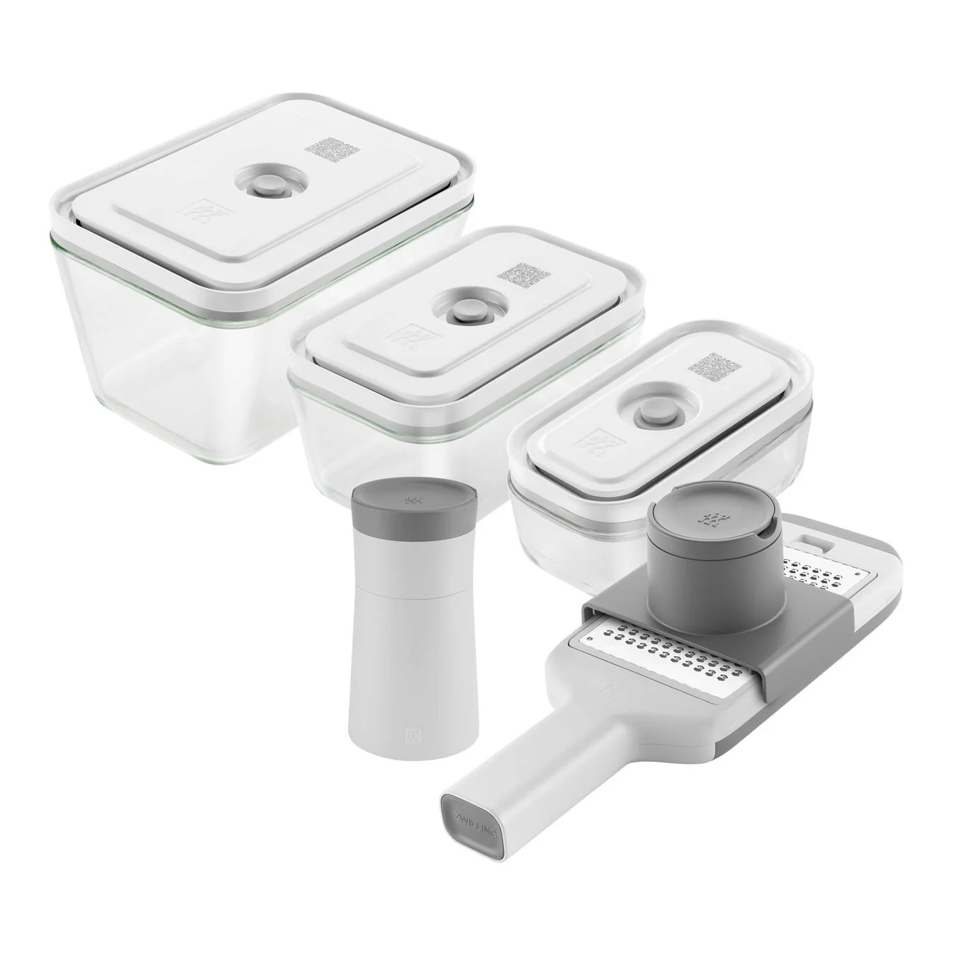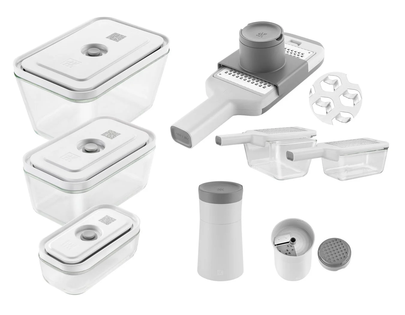 Ecco a te il tuo set professionale per tagliare tutti gli alimenti freschi e colorati. Include una grattugia multifunzione ZWILLING Z-Cut con tecnologia di grattugiatura bidirezionale, uno spiralizzatore ZWILLING Z-Cut per tagliatelle sottili di frutta e verdura e i contenitori sottovuoto per una conservazione fresca degli alimenti. Questi ultimi mantengono i cibi freschi cinque volte più a lungo rispetto alla conservazione tradizionale. I tre contenitori nelle dimensioni S, M, L di ZWILLING FRESH & SAVE sono il posto ideale per gli zoodles o ai cetrioli che potete facilmente preparare con l’affettatrice a spirale 4 in 1 del set. Il cutter in acciaio inossidabile 18/10, lavabile in lavastoviglie, crea deliziosi spaghetti a spirale da frutta, verdura e ortaggi crudi per contorni, guarnizioni o dessert. Il complemento ideale per il multigrattugia 7 in 1, anch’esso parte del set. Si può grattugiare, affettare e tagliare; puoi fare tutto con questo set. Cucinare non è mai stato così facile, fresco e delizioso!